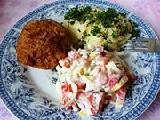 Bardzo zwyczajny obiadek piątkowy, mintaj smażony i sałaty z sosem chrzanowo-śmietanowym.