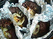 Grillowane pieczarki z masłem czosnkowym + filet z kurczaka z grilla .....ziemniaki pieczone + kapusta pekińska ze świeżym ogórkiem w sosie miodowo-musztardowo-czosnkowym ....