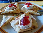 Dzień Naleśnika ...dla każdego coś innego ))). Z truskawkami z cukrem muscovado , bitą śmietaną ''pocymanowaną '' i guziczkami jagód . Oraz klasyka z białym serem z cynamonem i wiśniową gorącą frużeliną z nutką rumu .. )))