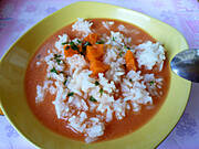 Gar zupy pomidorowej z ryżem... gotowanym w zupie, tak najbardziej z Młodym lubimy