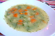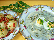 Botwinka na młodej włoszczyźnie, na drugie- placki ziemniaczane z gulaszem (Epsia przygotowała na nasz przyjazd z urlopu- punktuje dziewczyna u przyszłej teściowej, że hej..