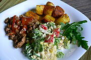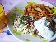 Kapusta pekińska z sosem czosnkowym ,przysmażone ziemniaki ,gyros od renataz36....