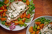Puree ziemniaczane, schab pieczony, sos śliwkowy, sałata.