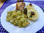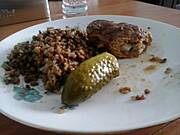 kasza jęczmienna z sosem z łopatki i młoda kapustka gotowana :)