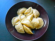 Z związku z tym że jutro mam mieć robione badanie tomografem dziś delikatny obiadek: będą pierogi z serem a dla syna kartacze