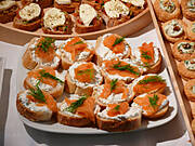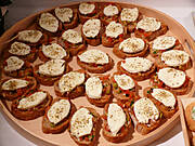 Dzisiaj mieliśmy małą uroczystość, mszę w kościele, najbliższ rodzinka po mszy wpadła, na przekąskę do mamy. Ugotowałam garnek młodej kapuchy, córa zrobiła kanapki z serem kozim i łososiem, szaszłyki z mozzarellą, pomidorkami koktajlowymi, oliwkami i szynką parmeńską , crostini z oliwkami , pomidorami, mozzarellą i szynką , posypaną startymi orzechami, ciasteczka z ciasta francuskiego z serkiem topionym i orzeszkami.Do picia herbata z cytryną , kompot z jabłek i sok pomarańczowy.
