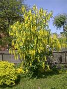 To jest młody złotokap (uwaga! nasiona silnie trujące), a dorasta do kilku metrów. Już nie mam go w swoim ogrodzie (poległ gdy do wsi zawitała kanalizacja). Nie posadziłam nowego - zajmuje zbyt dużo miejsca. Lepiej dobrze przemyśleć taki nabytek.