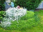 Na zdjęciu z lewm ,z tyłu rośnie lawenda biała, a ten dywan rozrośnięty, to niewiem jak się nazywa, bardzo dawno temu moja mama dostała odnóżkę od kogoś i wsadziła u siebie koło kompostnika, bardzo się rozrosło, więc i ja sobie posadziłam:)Jak zakwitnie to zrobię zdjęcie, może ktoś rozpozna nazwę, kwitnie na pomarańczowo.:)