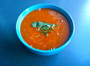 Dziś będzie zupa pomidorowa z czerwoną soczewicą wg przepisu Lo-li. I sałatka z ananasem i kurczakiem.