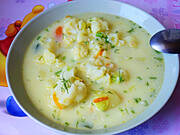 Zupa kalafiorowa i wczorajsza młoda kapusta z pieczywem.
