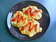 Zgadłaś, wyszło pysznie i zniknęło w mig:)Placuszki z kurczaka + sałatka: pomidory, ogórki, cebulka ze szczypiorem ze śmietaną i odrobiną octu balsamicznego.