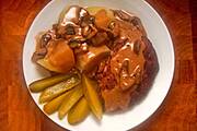 z Teściowych więc jej ulubione kluski na parze z mięsnym sosem i mizeria. No i koniecznie- kopiec kreta + po kieliszku nalewki kawowej.