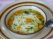 Rosół z indyka z makaronem, placki ziemniaczane z młodych