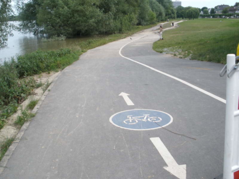 A druga scieżka prowadzi równolegle do tej powyżej ale uroczo nad samym Renem i jest regularnie zalewana . Przy wysokim stanie wody jest cała pod wodą ..)))