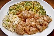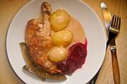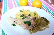 Kurczak duszony w mleku,kiszona lodowa sałata,ziemniaki ...