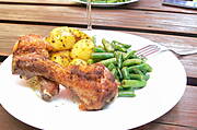 Reszta z wczoraj czyli udka i skrzydełka z piekarnika, ziemniaczki, fasolka szparagowa z bułką tartą na masełku