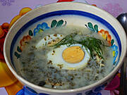 Chłopaki pod Grunwaldem, więc ja sobie dogadzam- barszcz czerwony zabielany i młoda kapustka z kiełbasą.
