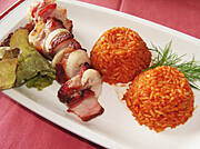 U nas skrzydełka w ryżu, i surówka z pekinki.
