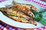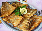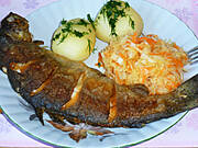 U nas dzisiaj zupa kalafiorowa, ryby smażone, złowione przez mojego męża, kotlety jajeczne z naszego przepisu, pieczywo. Do picia herbata z cytryną i woda mineralna z sokiem malinowym.