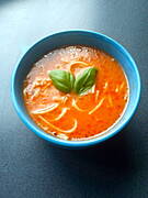 Pomidorowa z makaronem, na drugie będą zapiekane warzywa (bakłażan, cukinia, pomidory, papryka, czerwona cebula) z tzatzikami.