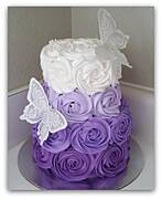 tort...będzie mikado w wersji dwu,albo 3 piętrowej...zdobiony klasycznie...ale nie do końca....od ciemnego fioletu,poprzez jasniejsze do koloru białego....tort cieniowany...dla porównania wklejam zdjęcie(chociaż nie jest to do końca dekoracja jaką chcę na swoim torcie)..