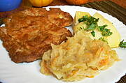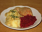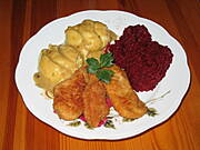 Karkówka moczona w maślance i panierowana (dzięki MR!), ziemniaki z wody i buraczki z chrzanem.