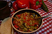U mnie dziś ala leczo- z fasolki szparagowej(grubej), kiełbasy,cebuli,pomidorów....z pieczywem.