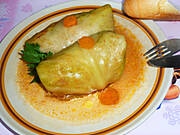 Wczorajsza zupa ogórkowa i gołąbki z mięsem, w pomidorach.