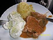 Wczorajsza zupa ogórkowa + żeberka w sosie,ziemniaki ,surówka z kiszonej kapusty z jabłkiem i marchewką....