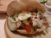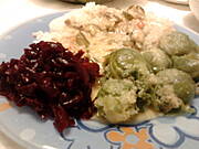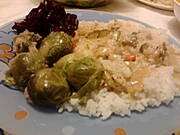 U mnie dzisiaj resztkowo: sos zmajstrowany z resztek kurczaka i dodatków kebabowych, ryż, buraczki marynowane z gruszką, brukselka, i przysięgam, że roszponka z sosem balsamicznym tudzież szpinak (wylazły ze zdjęcia).
