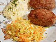 Karminadle, pyry z koprem i surówka z białej kapusty:)