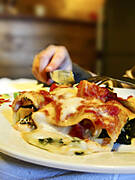 Cannelloni ze szpinakiem i ricottą w pomidorach pod beszamelem. :)