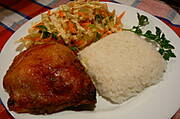 z ostatnich dni: udka kurzęce pieczone na ryżu, cukinia duszona z czerwoną cebulą