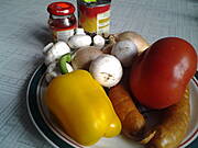 na obiad zupa warzywna, i potem pizza (mieso gotowane, kukurydza, papryka zielona i czerwona i duuzo sera żółtego;), z sosem pomidorowym