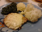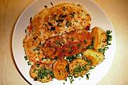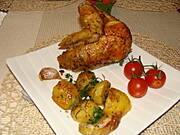 Kurczę duszone w czosnku, ziemniaczki, brokuły po francusku :)