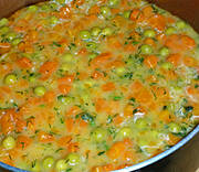 Wczorajsza zupa grzybowa, paszteciki z ciasta francuskiego z nadzieniem z kiszonej kapusty i grzybów, marchewka z groszkiem w sosie śmietano - koperkowym.