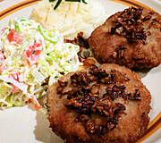 Ojej, no co?Zwykły befsztyk mielony po wiejsku.Z cebulką, jak należy.)))