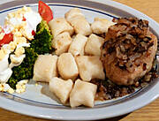 Wczoraj pierogi z mięsem i kapustą albo naleśniki z tym samym.