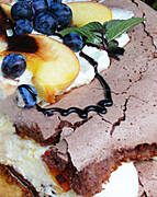 Na deser, torcik bezowy z kakao i owocami.