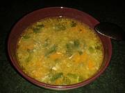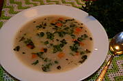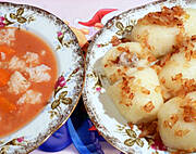 Zupa jarzynowa i odgrzewane gołąbki z ziemniaków.