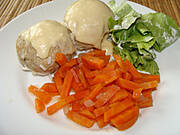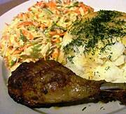 U mnie kurczak pieczony, ziemniaki i marchewka duszona.