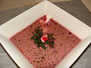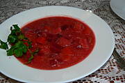 A u mnie barszcz czerwony i ziemniaki okraszone skararkami z cebulką.