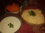 Kurczak, ziemniaki i surówka z pora+marchewi+jabłka