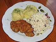 Zrazy z ziemniakami, surówką z pekinki i buraczkami:)