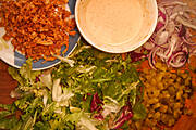Dalszy ciąg barszczu ukraińskiego ,ryż,mix sałat i indyk pieczony w pomarańczach ,rodzynkach i kokosie od Inki21....