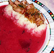 Ciąg dalszy ogórkowej, karkówka duszona, ziemniaki, cwikła.
