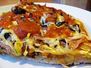 Ja wczoraj upiekłam 2 duże blachy pizzy z salami, papryką, pieczarkami i kukurydzą na mieszanej mące pełnoziarnistej, także i na dzisiaj jeszcze została. :)