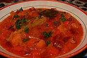 Sos warzywno-mięsny z czubrycą, makaron, buraczki zasmażane (pierwsze w
