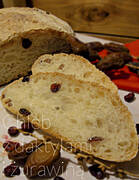Noworoczny wypiek. Chleb na zakwasie pszennym z żurawiną i daktylami. Mój zakwas niebawem skończy rok! Nie mogę uwierzyć, że tak długo obawiałam się go zrobić, to banalnie proste! Polecam niezdecydowanym. :)