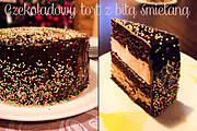 Składanie: pierwszy blat+2 łyżki dżemu truskawkowego masa czekoladowa drugi balt+2 łyżki dżemu truskawkowego masa truskawkowa trzeci blat polewa